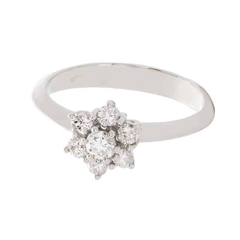 Anillo de compromiso roseta Bari de oro blanco y brillantes