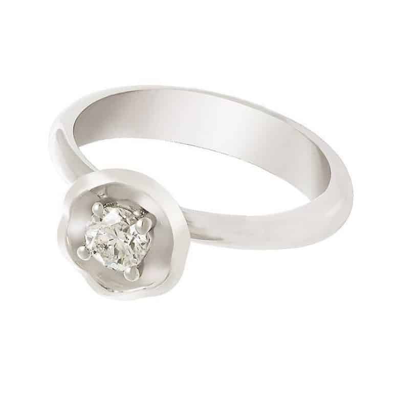 Solitario Fleur de oro blanco y diamantes