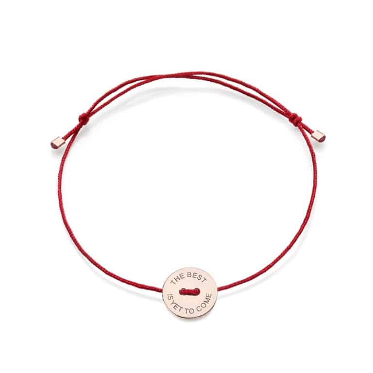 Pulsera de Oro rosa con frase cuerda en rojo “The best is yet to come”