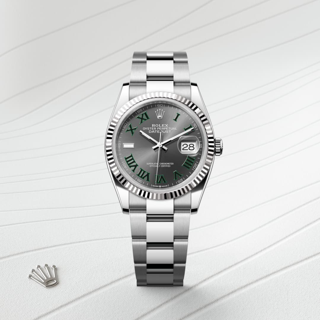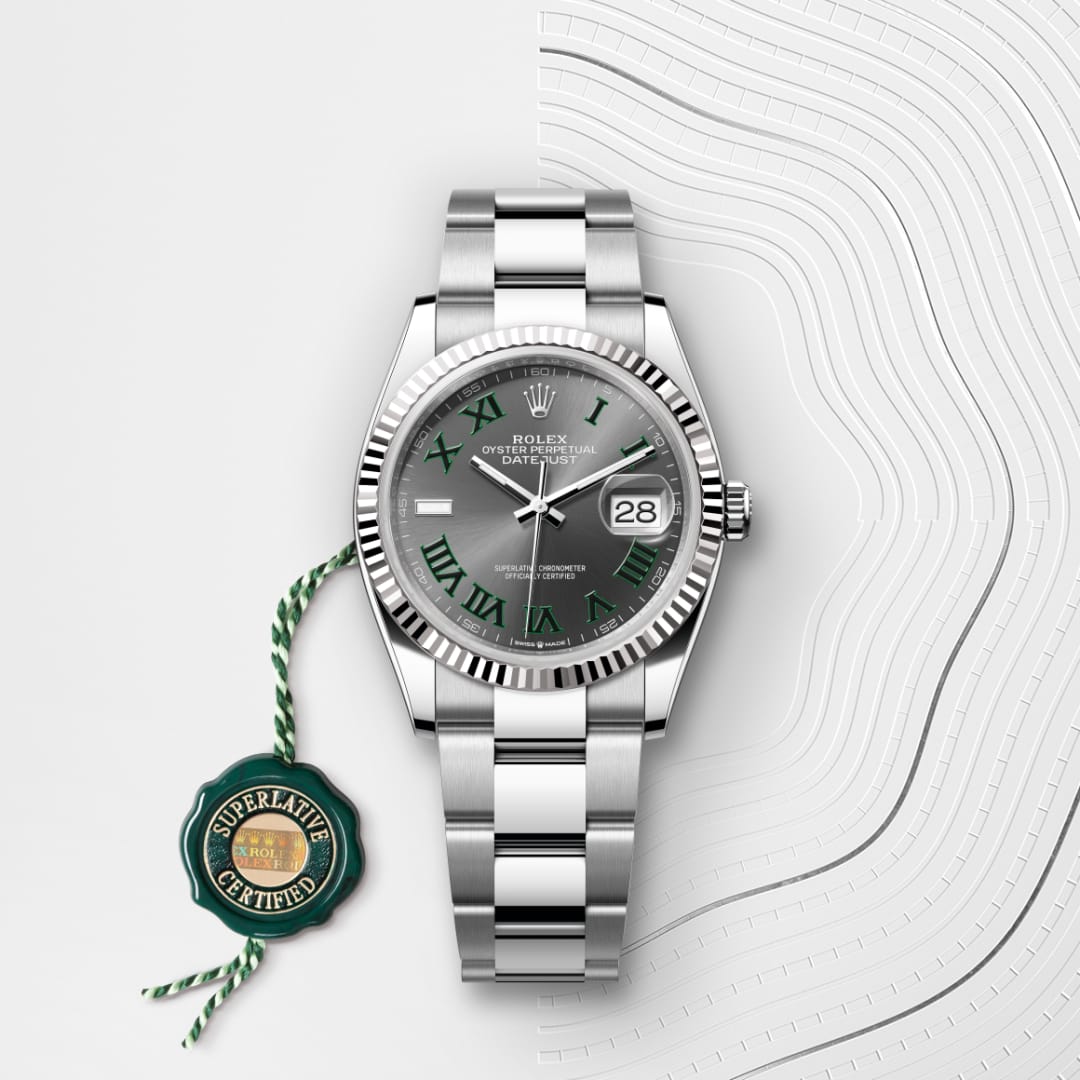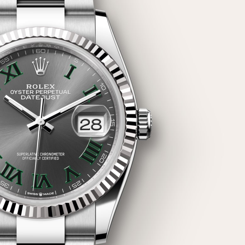 The Rolex fluted bezel is a mark of distinction. Originally, the fluting of the Oyster bezel had a functional purpose: it served to screw the bezel onto the case helping to ensure the waterproofness of the watch. It was therefore identical to the fluting on the case back, which was also screwed onto the case for waterproofness, using specific Rolex tools. Over time, the fluting became an aesthetic element, a genuine Rolex signature feature. Today the fluted bezel is a mark of distinction, in gold on this Datejust 36.