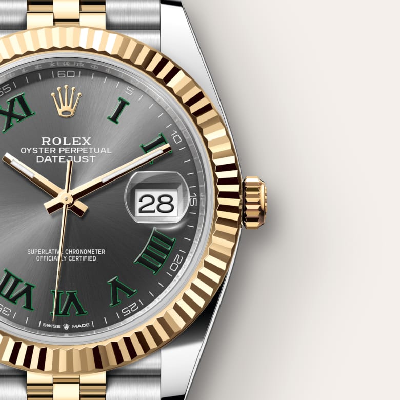 The Rolex fluted bezel is a mark of distinction. Originally, the fluting of the Oyster bezel had a functional purpose: it served to screw the bezel onto the case helping to ensure the waterproofness of the watch. It was therefore identical to the fluting on the case back, which was also screwed onto the case for waterproofness, using specific Rolex tools. Over time, the fluting became an aesthetic element, a genuine Rolex signature feature. Today the fluted bezel is a mark of distinction, in gold on this Datejust 41.