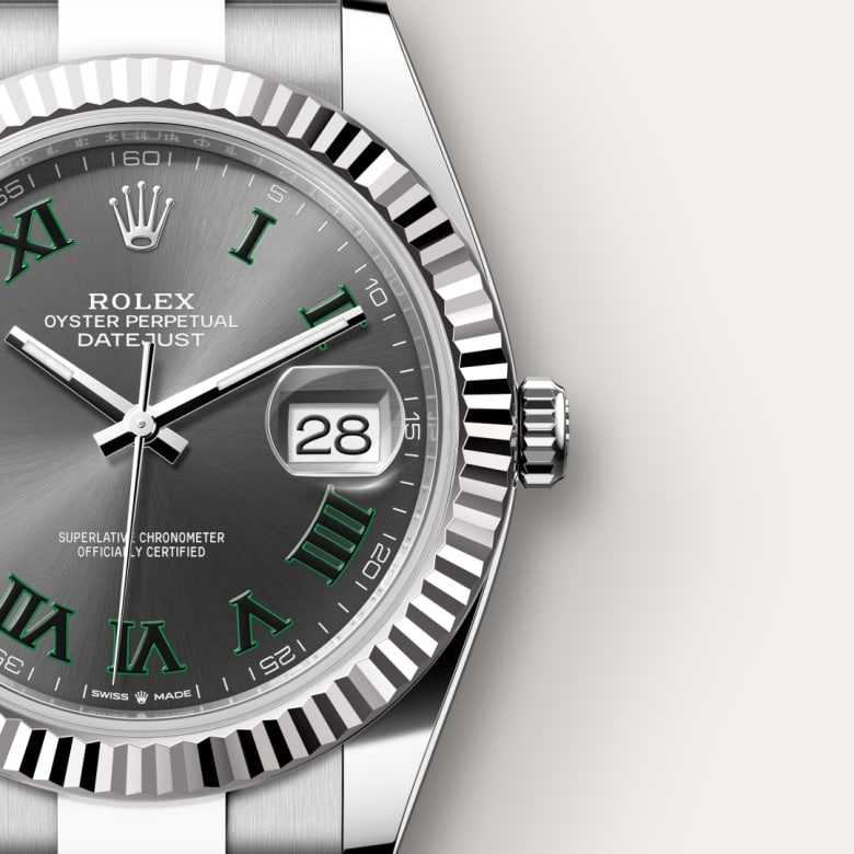 The Rolex fluted bezel is a mark of distinction. Originally, the fluting of the Oyster bezel had a functional purpose: it served to screw the bezel onto the case helping to ensure the waterproofness of the watch. It was therefore identical to the fluting on the case back, which was also screwed onto the case for waterproofness, using specific Rolex tools. Over time, the fluting became an aesthetic element, a genuine Rolex signature feature. Today the fluted bezel is a mark of distinction, in gold on this Datejust 41.