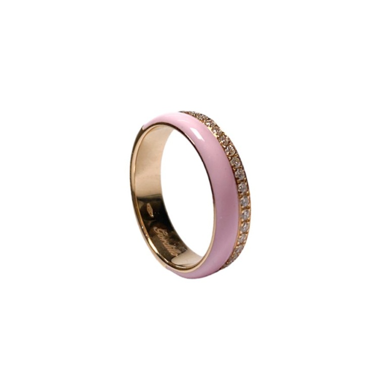 Sortija de oro rosa con esmalte rosa y diamantes